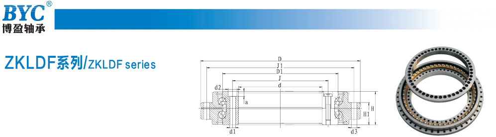 | 系列简介 | 轴向角接触球轴承ZKLDF转台轴承具有低摩擦,高旋转精度,高极限转速等特点,可以承受较高的轴向、径向载荷并具备较高的倾斜刚度。这种轴承尤其适合应用于复合载荷和精密方面的领域,被广泛的应用于机床回转台、磨头和多种测试装备上。 | |||||||||||||||||